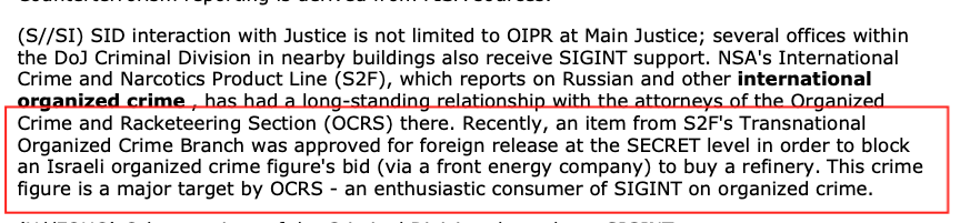 These relate to the NSA’s little-known work in tracking transnational organized crime.